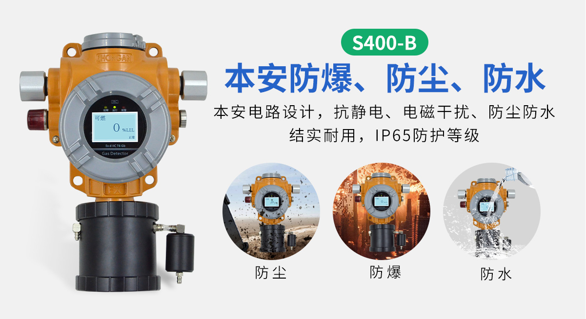 中安探測S400-B泵吸式過濾氣體探測報警器,可自由定制可燃氣體或有毒有害氣體傳感器進行檢測,防護等級IP65,防爆證書、消防證書齊全